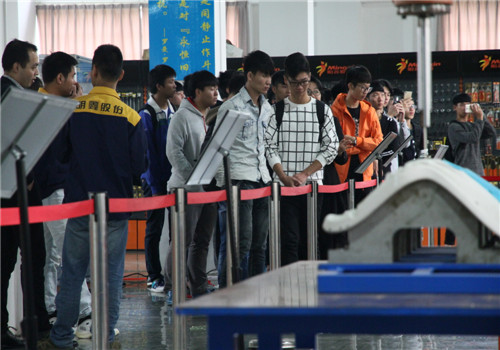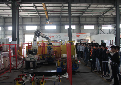 结束了展厅的参观后,师生们一行又驱车来前往我司的生产基地进行参观。在生产基地工作人员的引领下,近距离观看机器人的工作流程,并认真听取工作人员的介绍。在工作人员的精彩解说下,同学们对工业机器人的工作流程和应用等方面有了深入的认识。